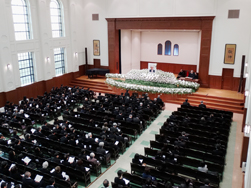 1月24日(日)2時半より、新マーガレット・クレイグ記念講堂において、昨年12月3日に天に召された水澤理事長の追悼礼拝を執り行いました。学院関係者、在校生、保護者、同窓生、ご遺族など約270名が参列し、一同で哀悼と祈りの時を持ちました。