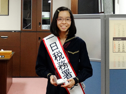 国税庁と全国納税貯蓄組合連合会共催の平成29年度中学生の「税についての作文」にて、東洋英和女学院中学部3年の中道梨花さんが「全国納税貯蓄組合連合会優秀賞」を受賞し、12月11日(月)に麻布税務署の一日署長を務めました。