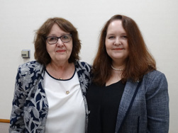 アンスティス・ブロムさん(左)は、カートメル先生のブローチをつけて