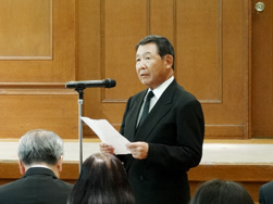 石澤友康中学部長の司式、武田ゆり学院オルガニストによる奏楽のもと、髙橋貞二郎学院宗教部長による聖書朗読、祈祷が行われたのち、永眠された方々のお名前が読み上げられ、中高部合唱部が「慈しみと愛あるところに神はおられる」(イェイロ作曲)を奉唱しました。続いて、伊勢田奈緒学院宗教部長が「主がヨセフと共におられたように」と題して説教を行い、学院から増渕稔理事長、同窓会から山北千世同窓会会長が挨拶されました。