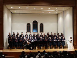 今回は、本学院高等部卒業生お二人によるコンサートで、前半は日本を代表するオルガニスト今井奈緒子氏のオルガン演奏、後半は新進気鋭の若手ソプラノ歌手横山和美氏の美しい独唱が披露されました。また、後半には横山和美氏と中高部合唱部の共演もあり、この日限りの素敵なハーモニーが響きわたりました。最後は出演者・参加者全員によるハレルヤ合唱で心がひとつとなり終演となりました。終演後の花束贈呈では出演してくださったお二人への感謝の拍手が長い間鳴りやみませんでした。