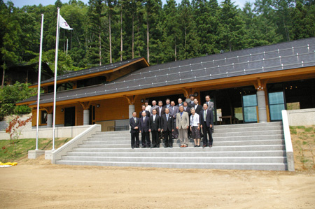 完成した長野彌記念ホールの前で