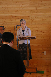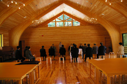 木のぬくもりが生かされた清々しい新メインホールで、工事に関わってくださったすべての方々へ感謝を捧げ、これから新たに始まる野尻での生活が実り多いものであることを一同祈りました。