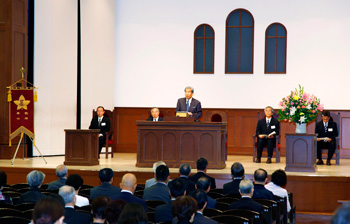会長・副会長・監事・顧問・役員の皆様が出席され、新マーガレット・クレイグ記念講堂で設立式が行われました。