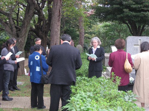 昨年2009年10月24日に亡くなられたロジャース元宣教師のご遺族が日本を訪れました。今回来日されたのはロジャース先生の姪御様にあたるMrs. Margot Pritchard とそのご夫君です。ちょうど先生の命日から1年目にあたる10月24日(日)、鳥居坂教会にて、鳥居坂教会の教会員でもあり、バイブル・スタディにもご尽力されていたロジャース先生をおぼえての記念礼拝ののち、先生のご遺志にしたがって青山霊園に先生のご遺骨が分骨されました。