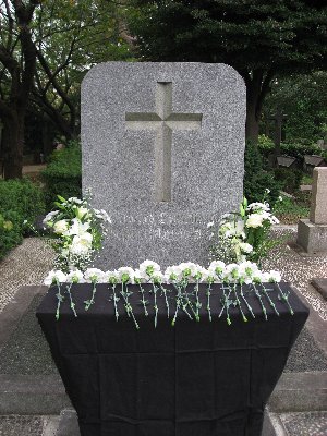 1950年代頃には縁故者もいなくなり、青山霊園のその一帯は荒れ果ててしまいました。そのことに心を痛めた当時の青山学院教授ジャン・クランメル先生が修復を呼びかけました。