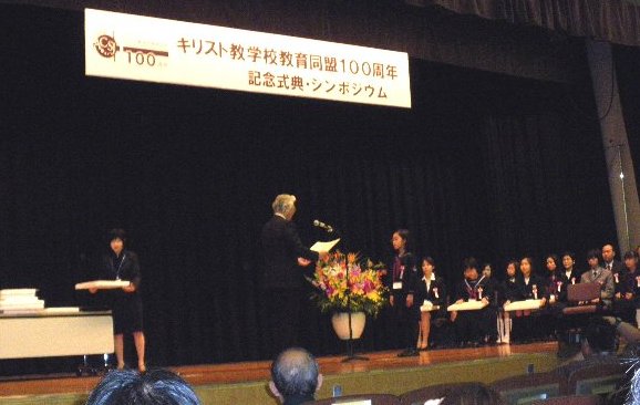 さる11月23日(火・祝)立教大学タッカーホールにおいてキリスト教学校教育同盟100周年記念式典とシンポジウムが開催されました。記念式典後には、100周年記念ロゴマークおよび作文・エッセイコンテスト入選者の表彰式が行われ東洋英和から複数の入選者が出ました。