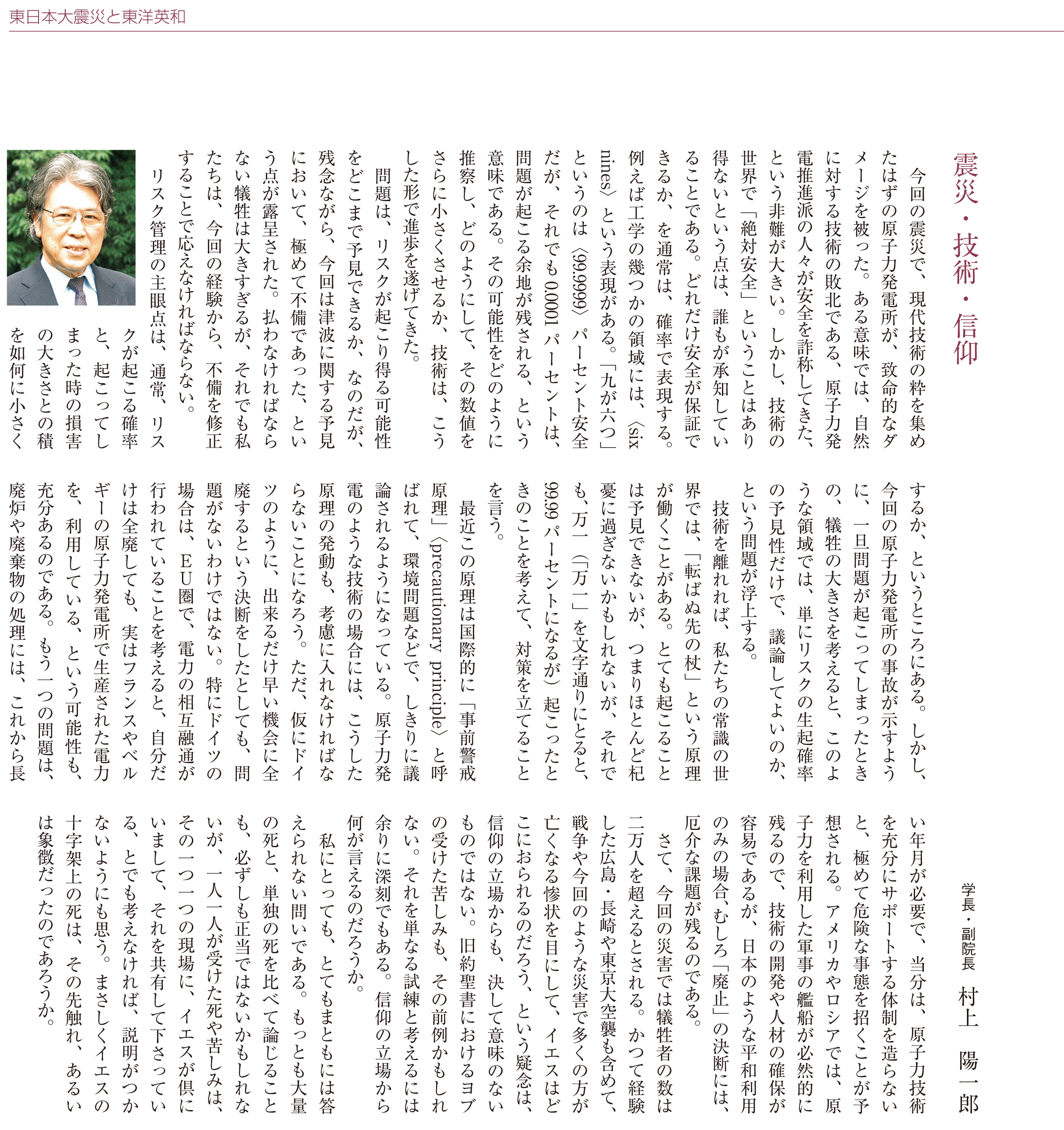 その中から池田守男理事長・院長、村上陽一郎学長の震災に向けたメッセージを紹介いたします。