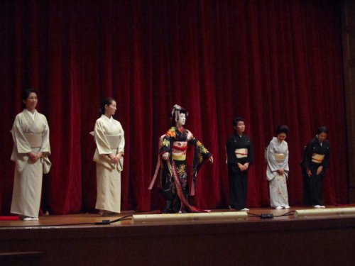 この公演では、西川流十世宗家であり人間国宝の西川扇藏氏、卒業生の西川祐子さん、花柳かなで(村岡恵理)さん、そして中村梅彌(中村光江)さんが、立方として踊って下さり、また演奏も卒業生の越智義乃(西川都)さん、今藤 長美弥(青木ひとみ)さんがご担当下さいました。藤間春素蛾(阿部恵代)さんにもご参加いただき日本舞踊が初めての方でも楽しめるように解説が織り交ぜられ、楓の会ならではの公演となりました。