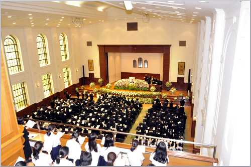 6月16日(日)2時半より、新マーガレット・クレイグ記念講堂において、5月20日に逝去された池田理事長・院長の追悼礼拝を執り行いました。学院関係者、在校生代表、保護者、同窓生、ご遺族など約530名が参列し、一同で哀悼と祈りの時を持ちました。