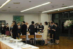 就任式に続きお祝いの会を開き、吾妻國年副院長による歓迎の言葉、水澤理事長と深町院長からのご挨拶等があり、新理事長・新院長就任の喜びを学院関係者で分かち合いました。