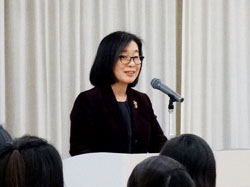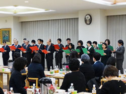 礼拝後に小学部食堂で行われたクリスマス祝会では、楠山眞里子 高等部長による挨拶の後、各部の教職員による合唱などがあり、一同でクリスマスをお祝いしました。