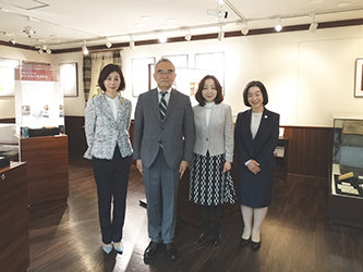 3月31日(木)、高等部卒業生であり作家の村岡恵理さんのご紹介により、在カナダ日本国大使館にご赴任予定の山野内 勘二 特命全権大使をお迎えしました。当日は、「学院資料・村岡花子文庫展示コーナー」を見学された後、村岡さん姉妹及び学院関係者と懇談の時間を持ちました。