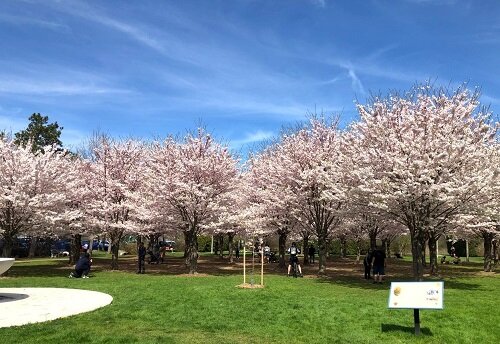 東洋英和女学院「桜プロジェクト」の桜が、カナダ・オンタリオ州にて今年も美しい花を咲かせました。出足は昨年よりやや遅かったものの、気温の上昇にともない4月28日には満開に!有賀誠一先生(カナダ合同教会引退牧師)やカナダ在住の卒業生・長﨑麻里さんから連日送られてくる報告から、一部をお伝えいたします。 「続報」を後日お届けしますので、どうぞお楽しみに!