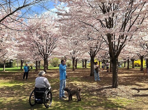 ※桜プロジェクト「ありがとうを桜に託して」とは・・・・東洋英和女学院の同窓生を中心とした、ミス・カートメルを始め多くの宣教師を送り出したカナダへ感謝と、友好の絆のしるしとして桜を贈るプロジェクト。2014年に植樹。5年毎に現地を訪問し、桜の成長を見守りつつカナダの方々との交流を重ねている。