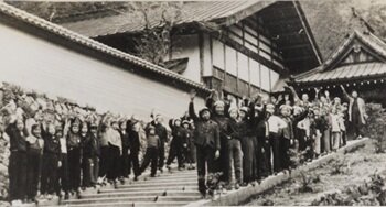 東洋永和女学院附属初等学校(現在の東洋英和女学院小学部)の集団疎開は1944(昭和19)年8月に始まりました。キリスト教の学校である東洋永和に指定されたのは、栃木県栃木市にある出流山満願寺でした。1945(昭和20)年10月に集団疎開が終了するまで、小学生たちは親元を離れ、先生がたと共に山寺での生活を送りました。