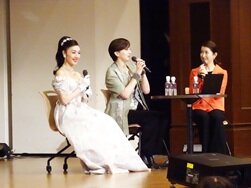 公演の中盤で行われたトークタイムでは、「輝きはここから ~英和生からタカラジェンヌへの軌跡」と題し、東洋英和幼稚園から小学部、中高部の思い出を振り返っていただき、会場は大いに盛り上がりました。