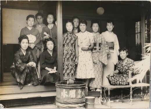 林芙美子(前列左から2人目)、村岡花子(後列左)と女流文学者たち(1943年)
