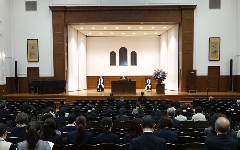 今年度は、髙橋貞二郎院長の司式のもと、野田美由紀学院宗教部長(横浜校地)による聖書朗読、祈祷の後、東京神学大学学長の神代真砂実先生に「不安なときに」と題して説教をしていただきました。