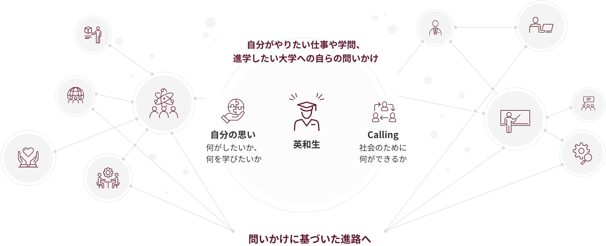 敬神奉仕のもとに学ぶ英和生たちには、自分がやりたい仕事や学問、進学したい大学など「自分の思い」に加えて、「私にとってCallingとは何か?」という問いかけに基づいた進路を切り拓いてほしいと願っています。