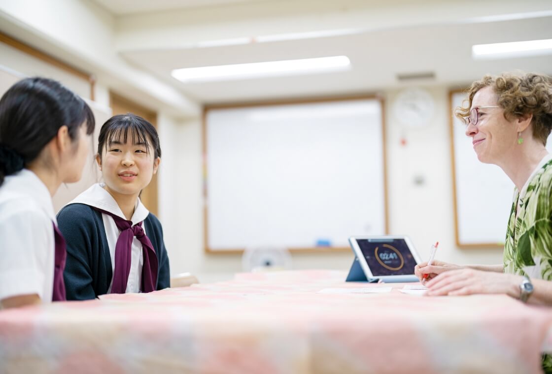 3段階の習熟度別授業を行い、上級クラスは、ネイティブの教師と文学作品を読む時間があります。ニーズに応じた演習も選択でき、高い英語力を養います。英会話は、ディベート、英作文などを通して自由に議論ができる語学力の修得を目指します。