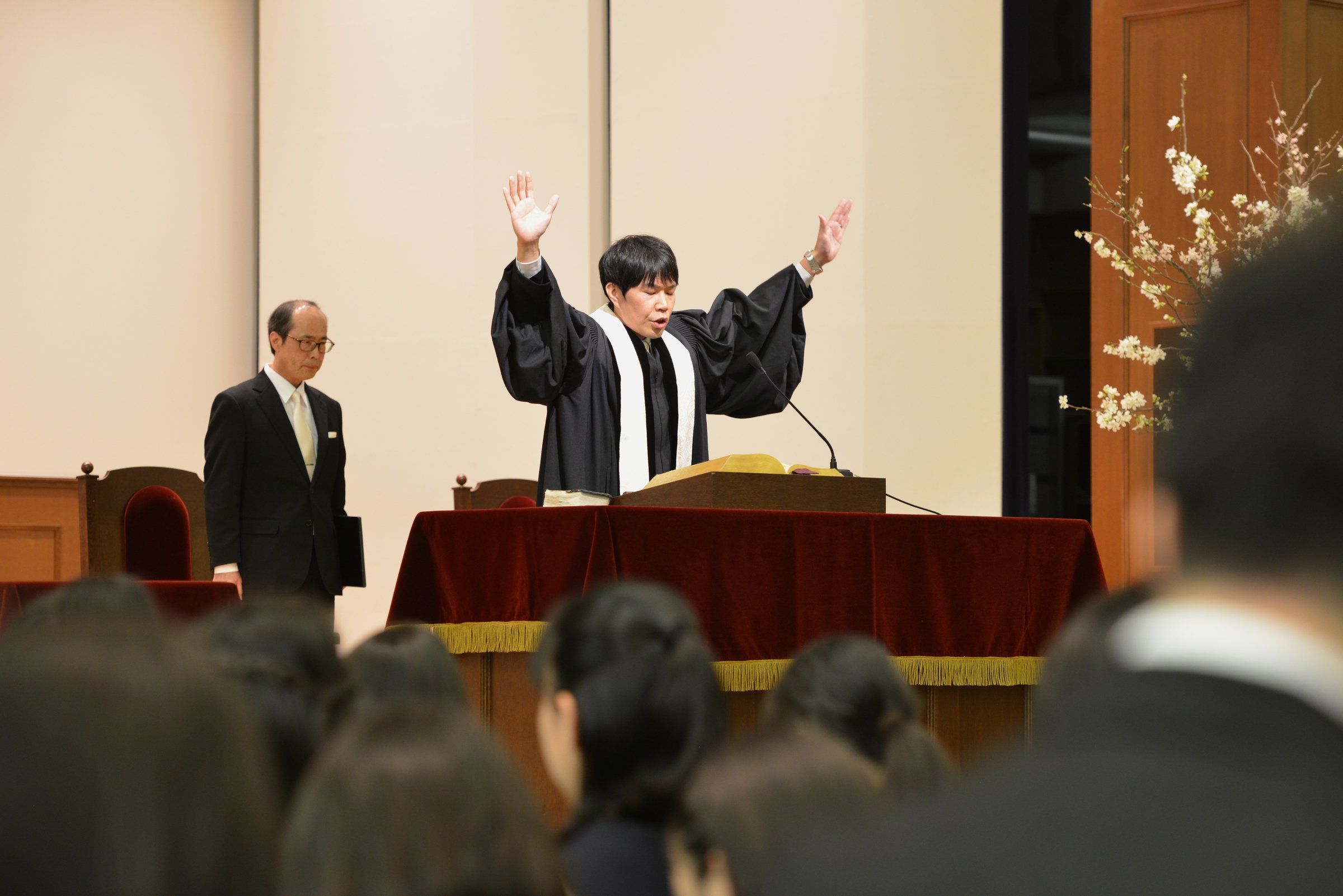 牧師の上野峻一先生による祝祷。
