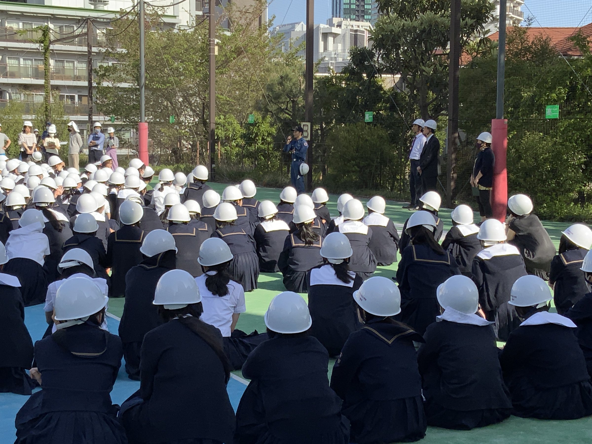 その後、麻布消防署の方から講評をいただきました。ご自身の学生時代の話も交えてくださり、生徒たちは真剣に聞き入っていました。