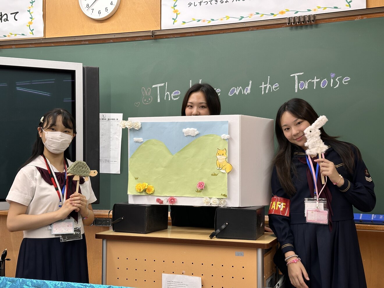 英語のパペットショーや、英語圏の国々の子ども向けアニメの内容と目的をまとめた展示を行いました。