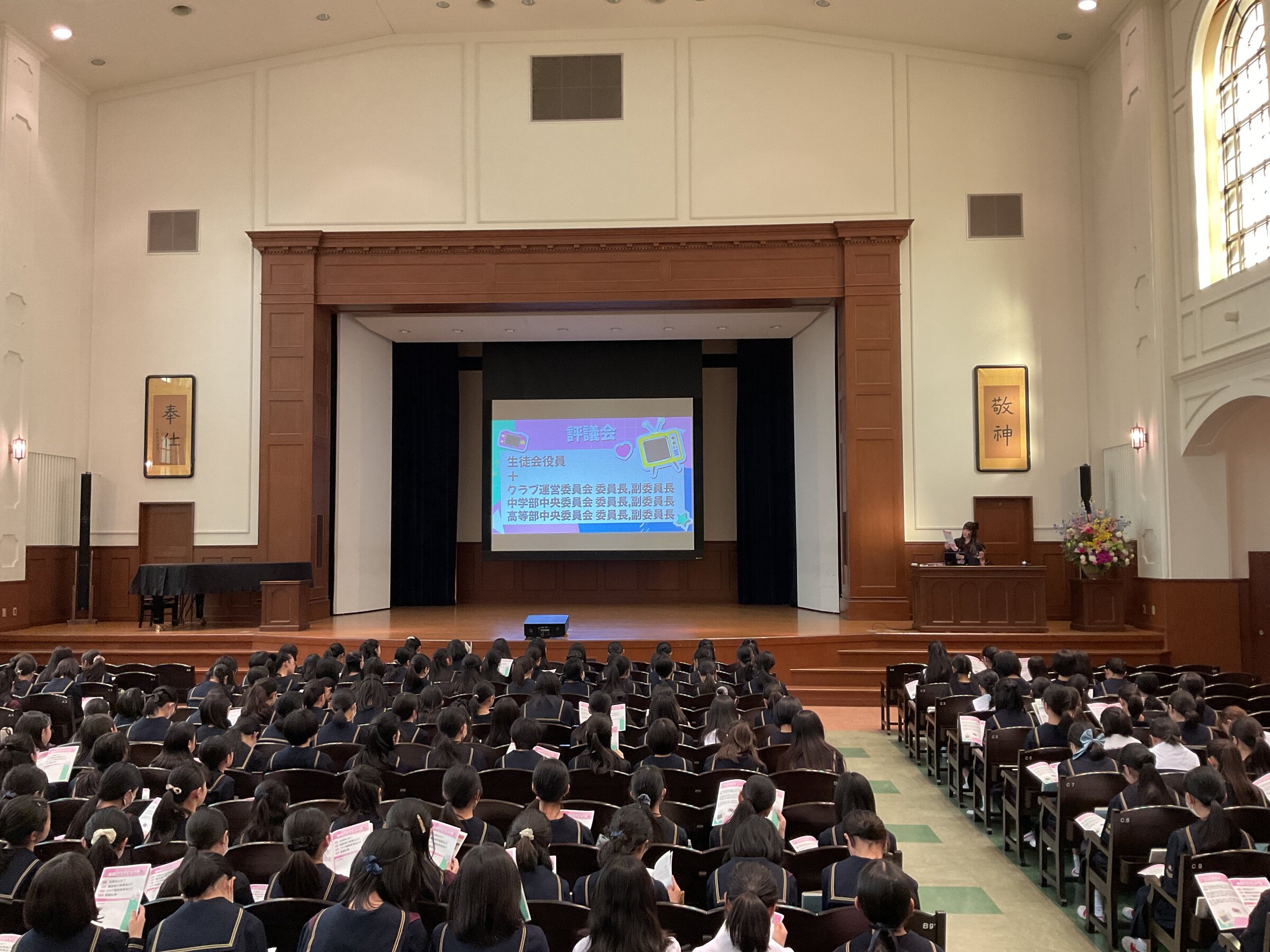 中学1年生が東洋英和に入学して約1週間後、生徒会への入会式が行われました。