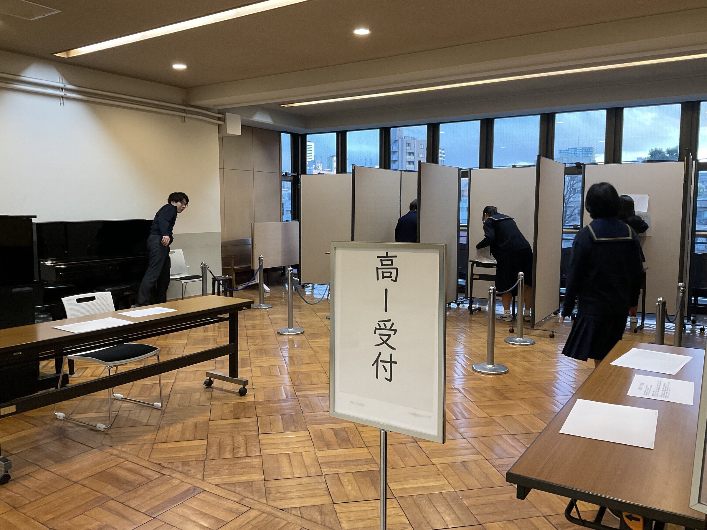 投票日前日の放課後、選挙管理委員が投票所を設営しています。
