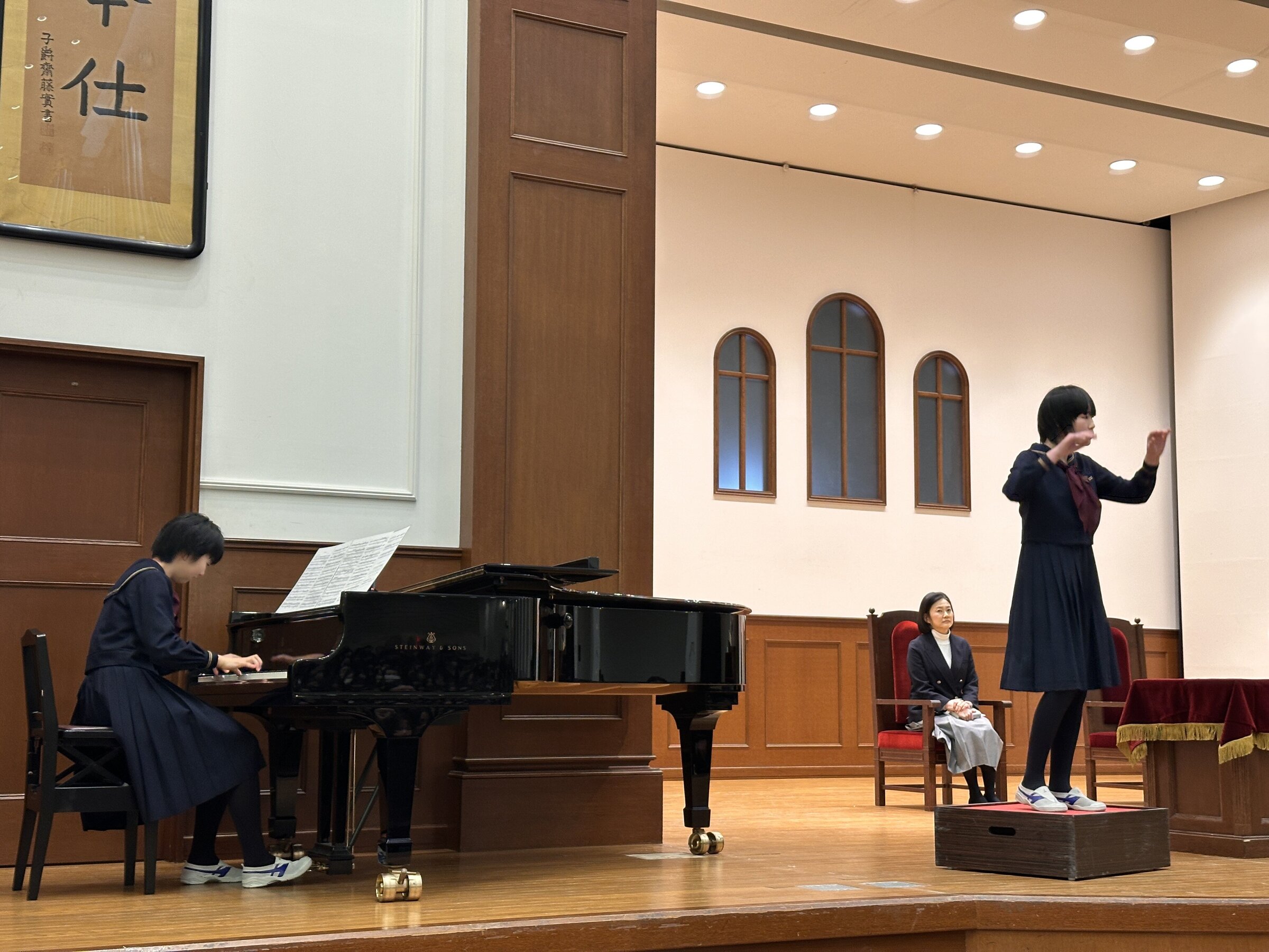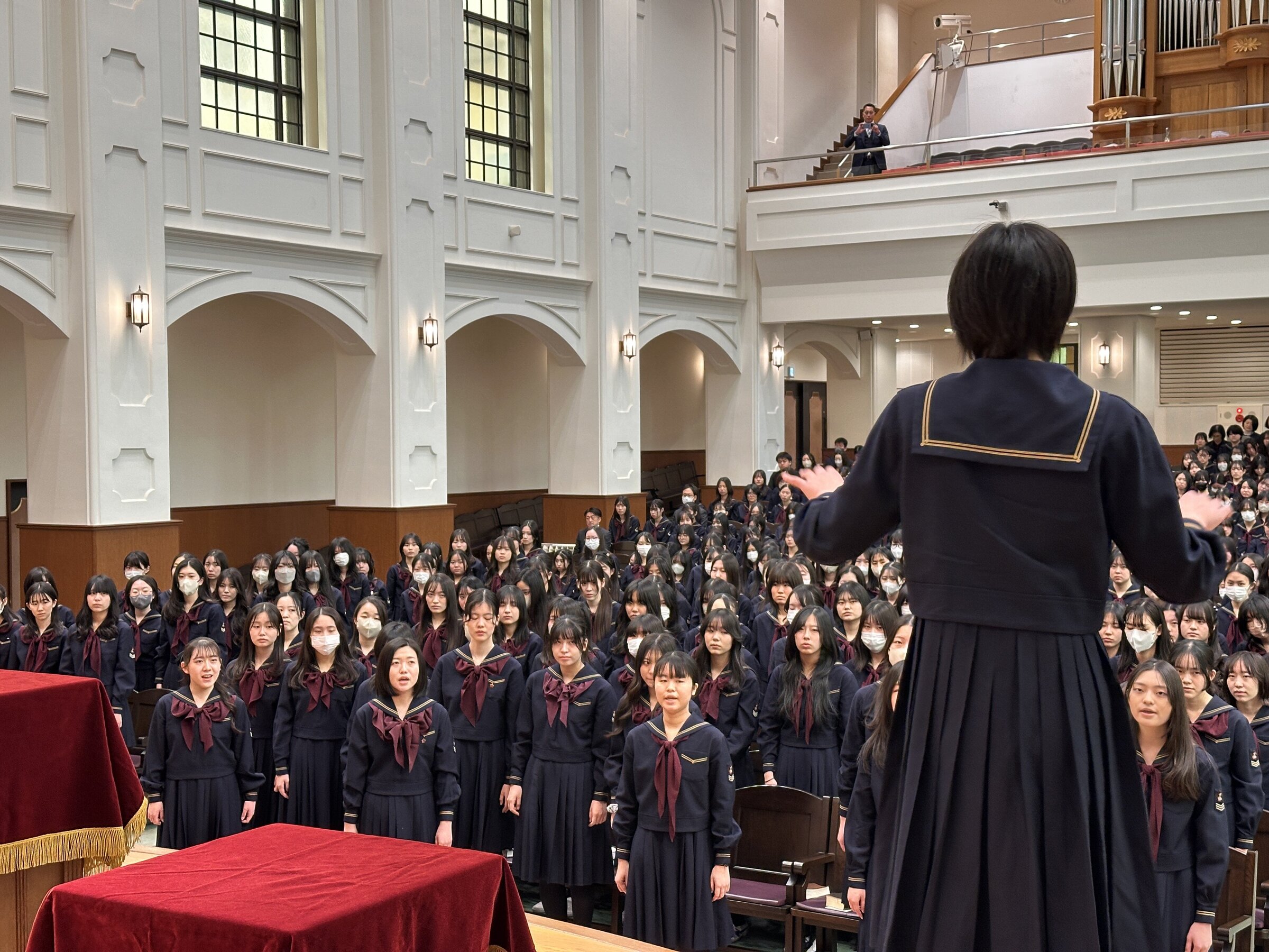 卒業礼拝では卒業生が「Gloria」を合唱します。