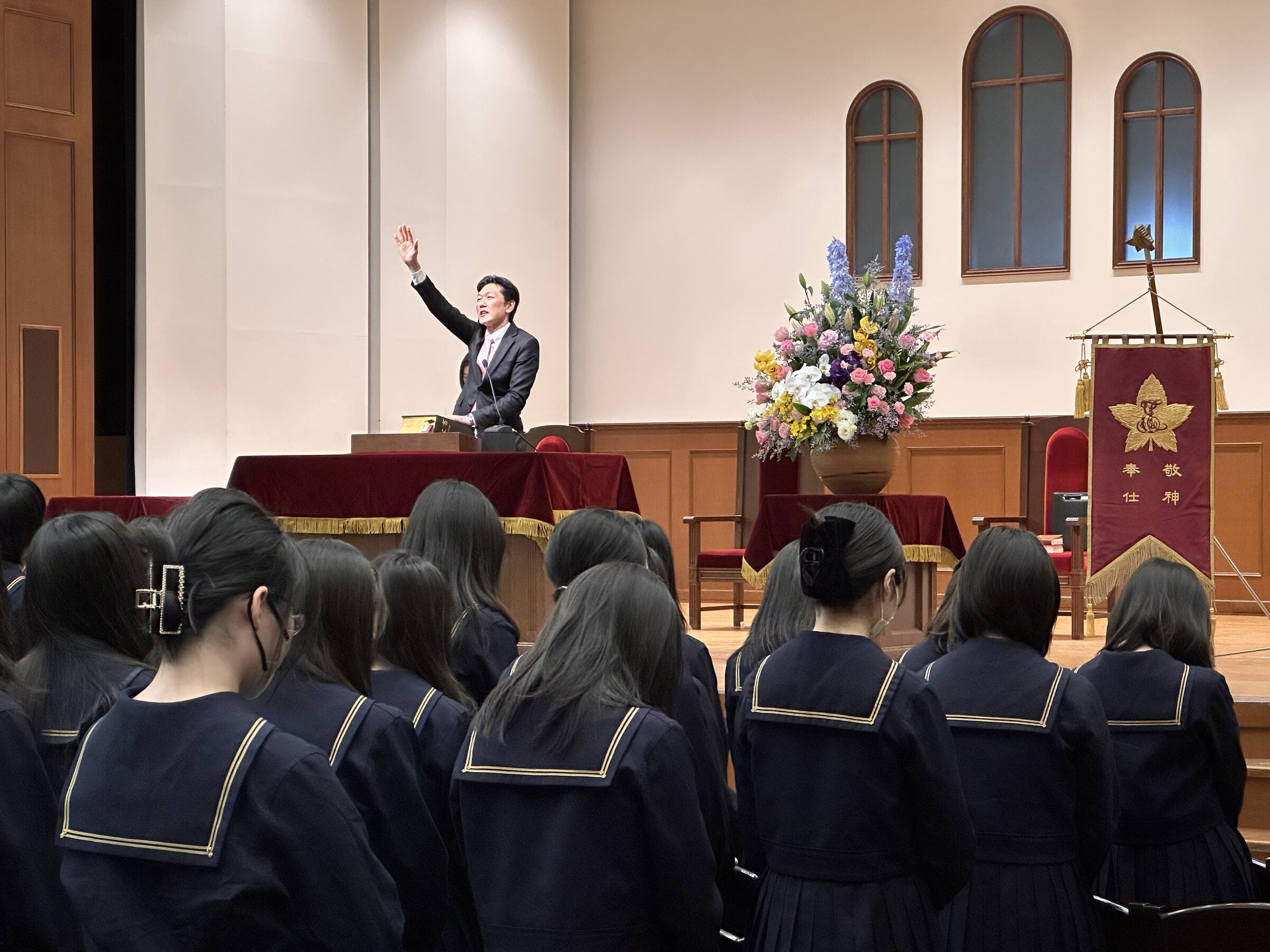 東洋英和では高等部卒業式の前日、高校生一同が揃う最後の礼拝として卒業礼拝を行います。