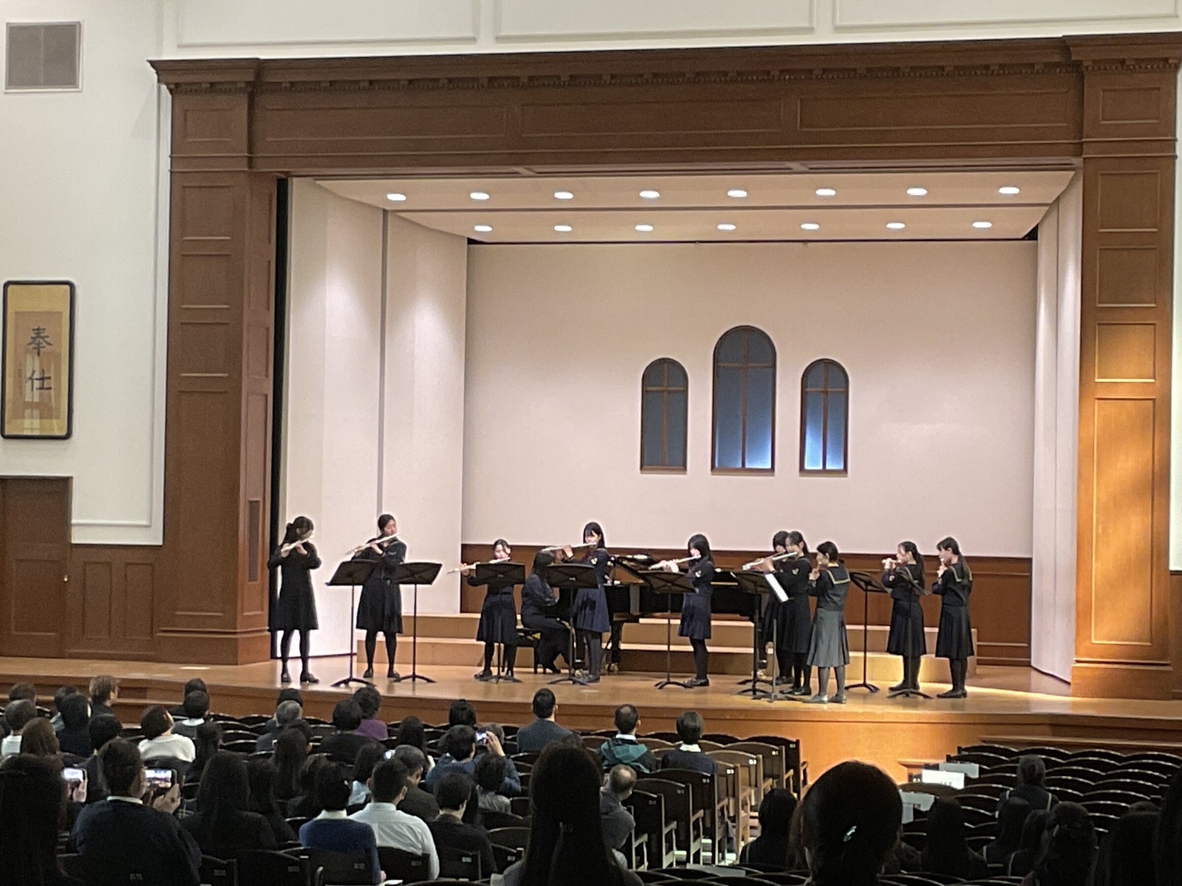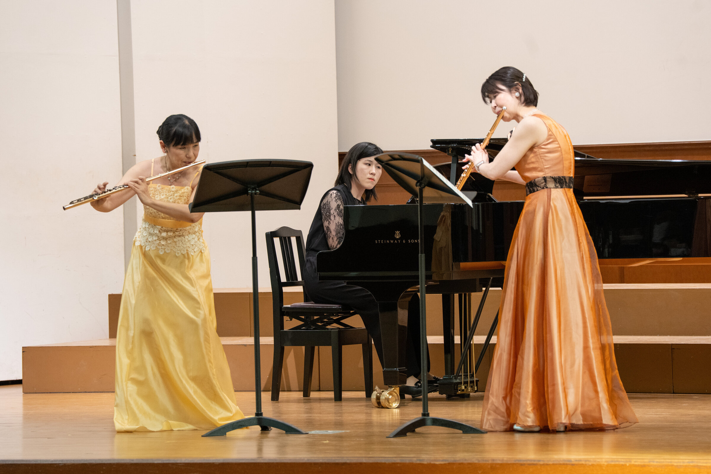 それを記念して、長きに渡り器楽科をご指導くださっているフルート講師の先生方が特別演奏をしてくださいました。