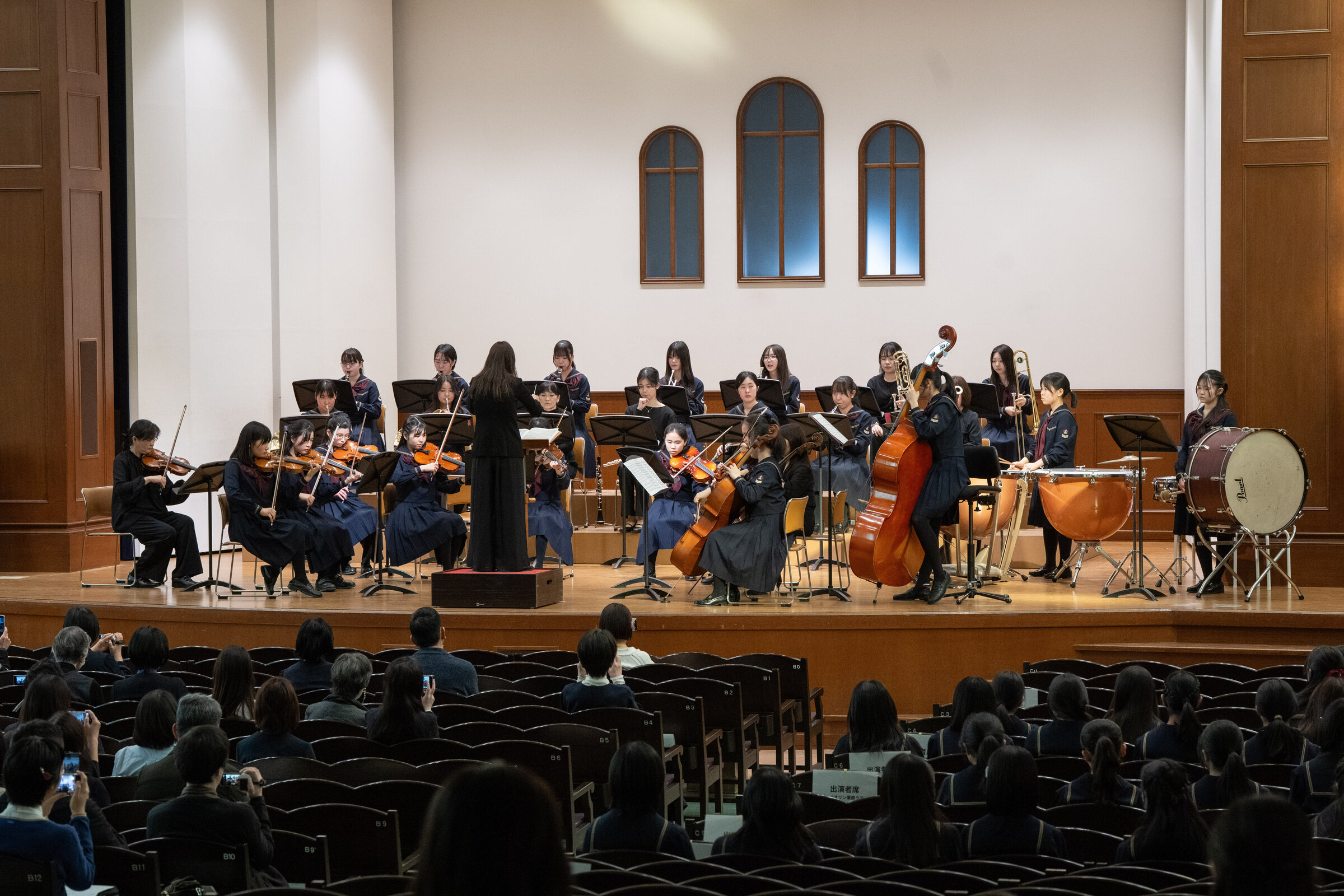 曲目はフォーレ作曲「シチリアーノ」、この曲は英和にとっては馴染み深く、毎日の下校時の音楽として流れるものです。