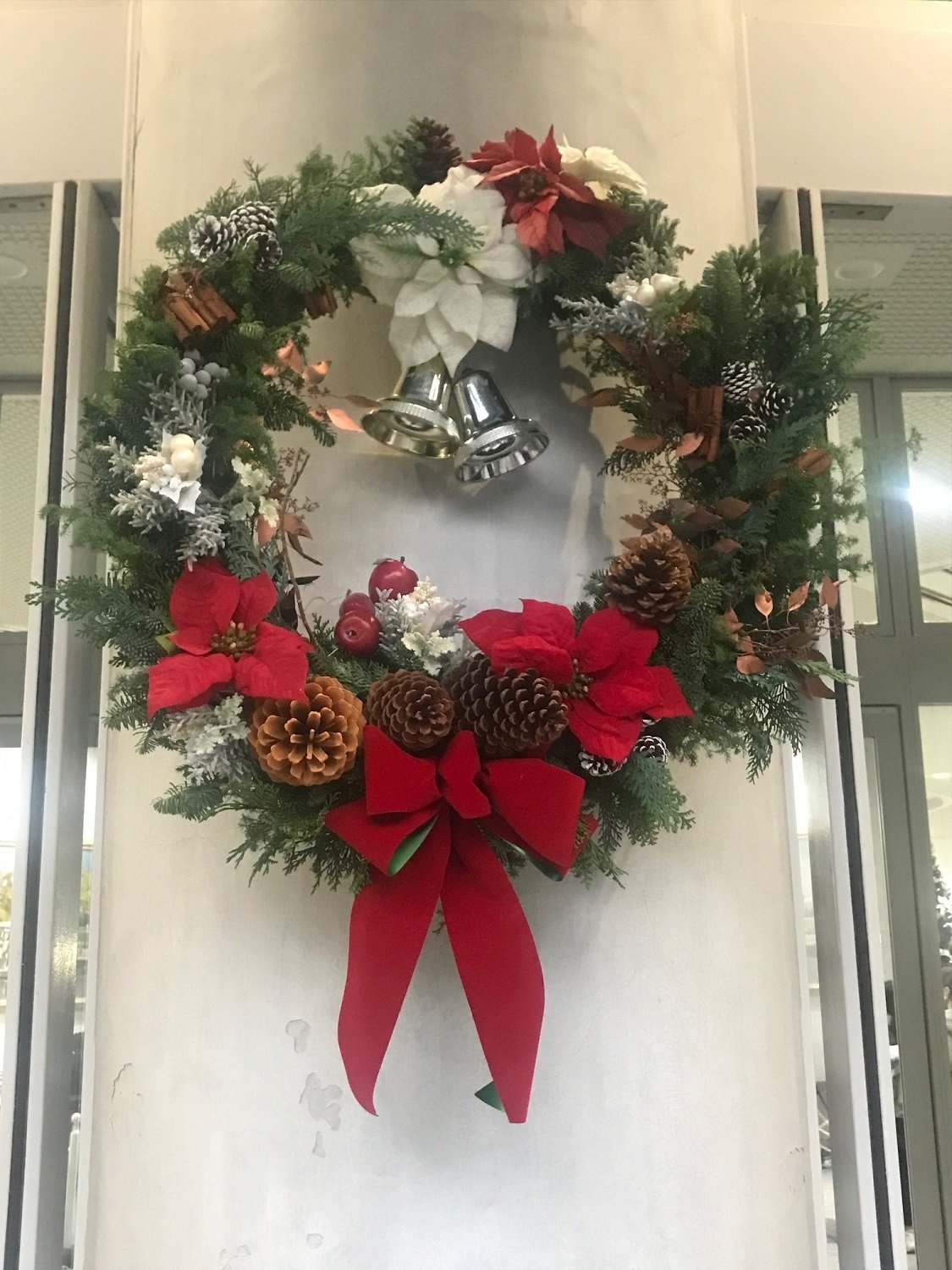 学内がアドヴェントクランツ・リースで彩られています