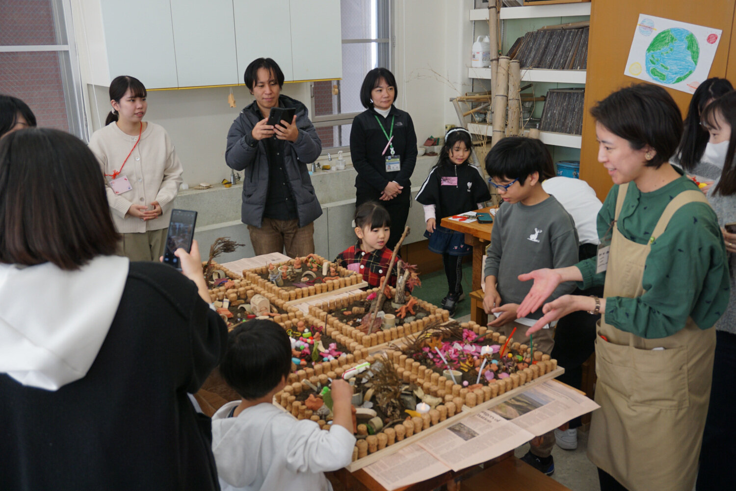 身近な自然物を活用した箱庭あそびは、三上准教授が「こども環境学会」(2024年6月)で出会ったワークショップを参考に、緑区と英和の森を想う気持ちが込められています。