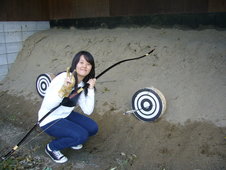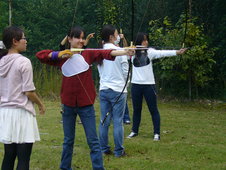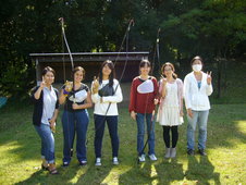 10月6日(木)、留学生3名が弓道体験をしました。弓道部員の学生から構え方や体勢、指の使い方などの指導を受け、いよいよ本物の弓を使って実戦。的に当てようとアドバイスを受けながらみんな一生懸命練習していました。イタリアからの留学生はそのまま弓道部へ入部!早く上手になりたいと毎週の練習を楽しみにしているようです。