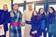 1月12日、サレント大学(イタリア)およびケルン・ビジネス・スクール(ドイツ)からの交換留学生4名と、本学学生3名が、両国国技館にて大相撲を観戦しました。