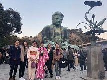 私たちは鎌倉駅で集合してから、着物に着替えに行きました。みんなは着物姿で小町通りを歩きました。人は混んでいましたが、店がいっぱいあるので楽しく歩きました。そして鶴岡八幡宮に向かいました。そこでは初めて七五三のお参りと結婚式を見て感動しました。それに私たちは高徳院に行きました。一日中着物姿で7キロ歩いていて疲れましたが今日の一日は実際に日本文化に触れることができてとても嬉しかったです。今回の着物体験で本物の日本での留学を感じました。