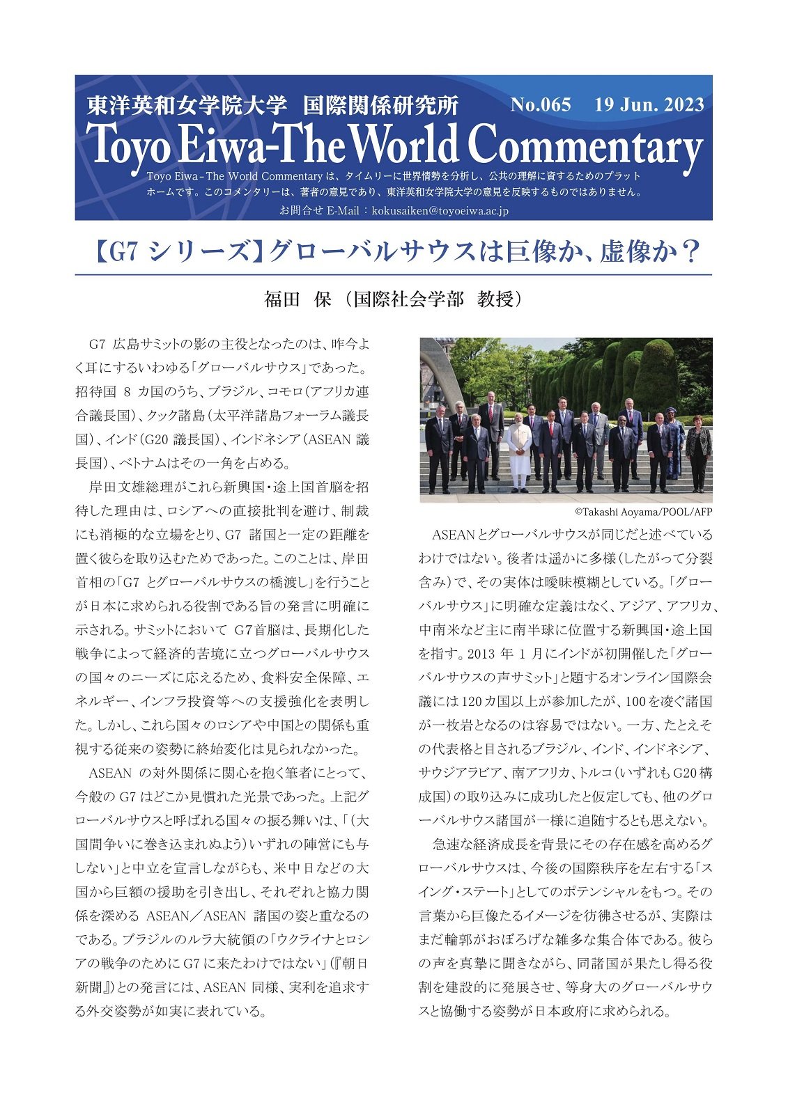 国際社会学部 福田保 教授 執筆『【G7シリーズ】グローバルサウスは巨像か、虚像か?』