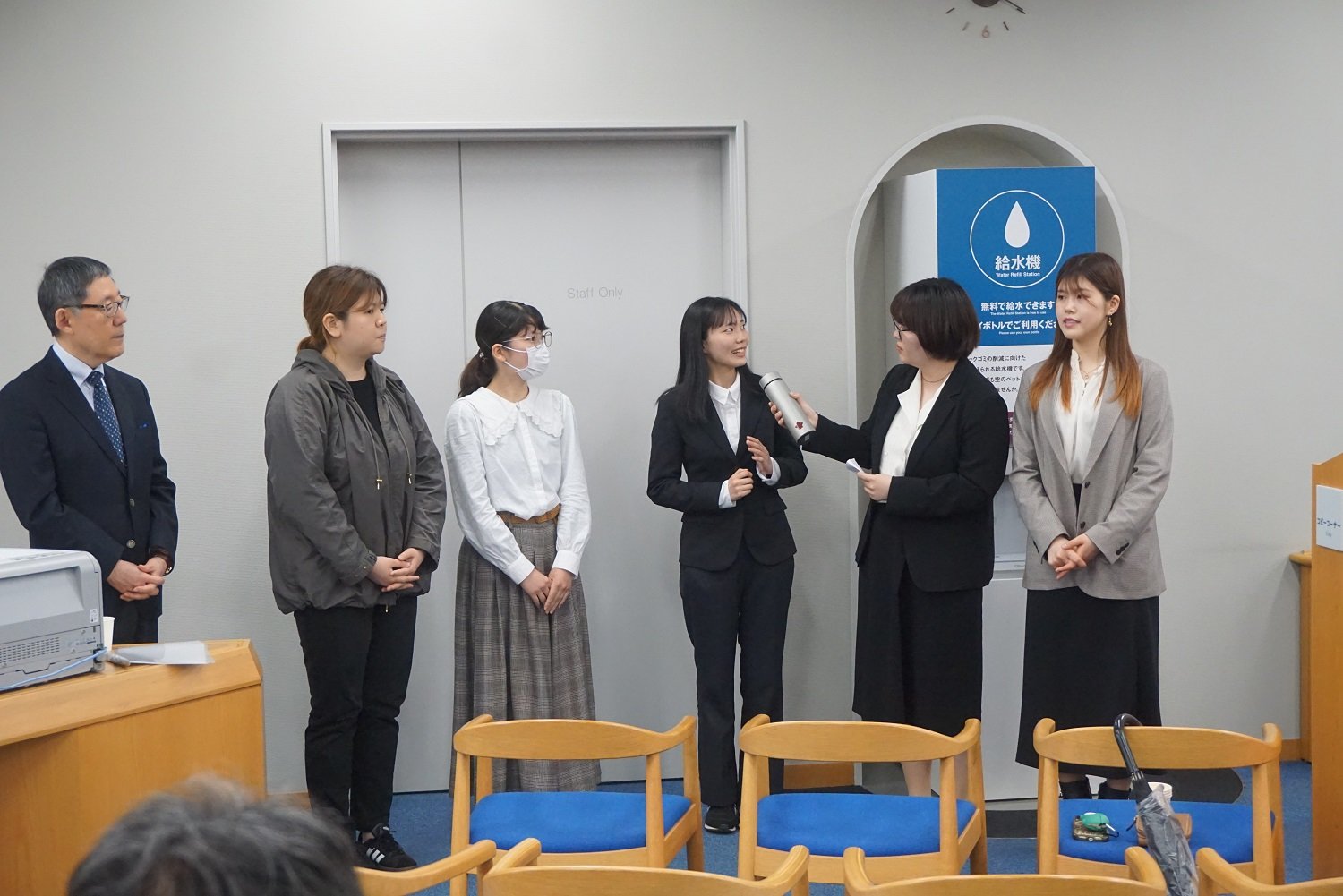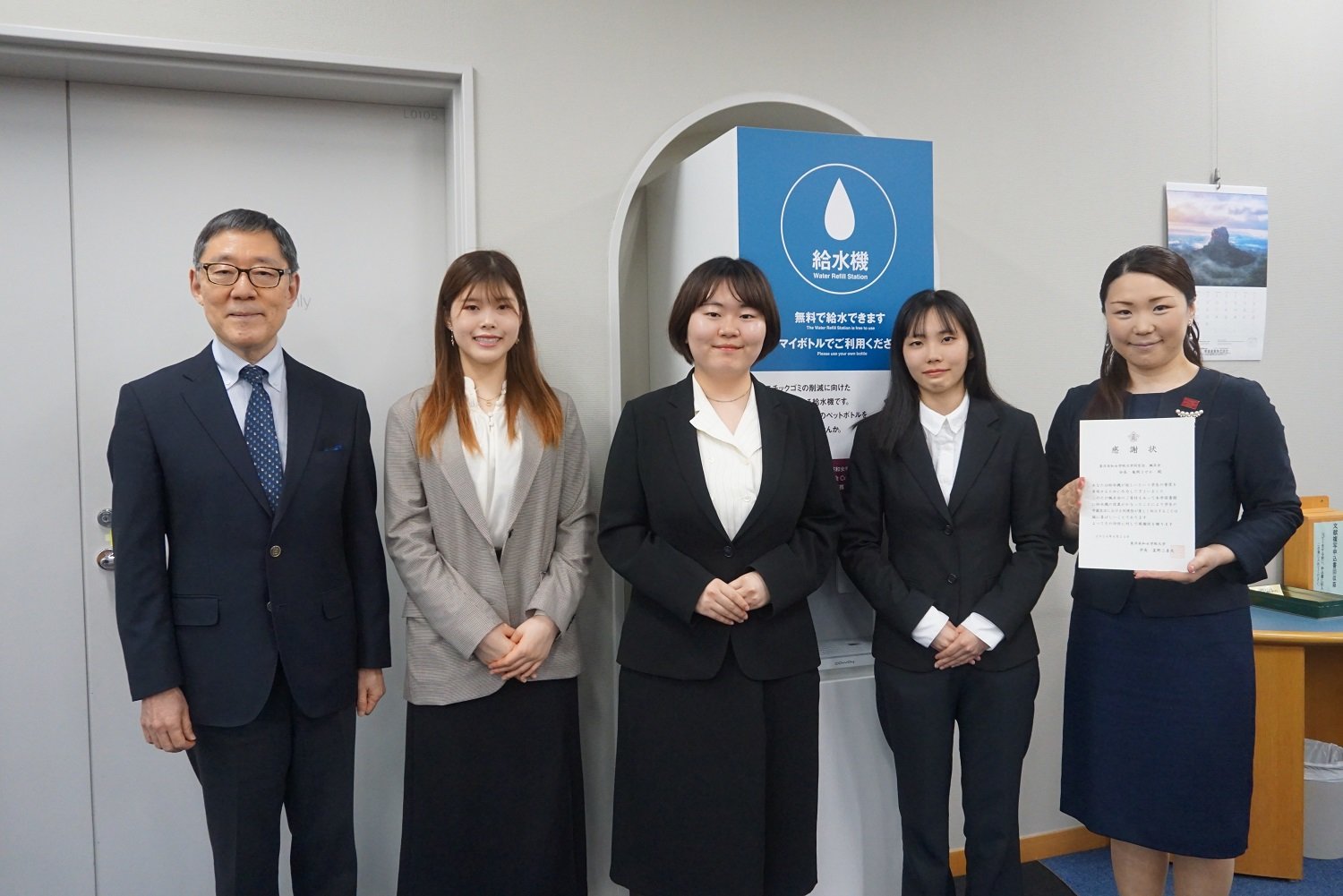 この企画は、学生団体の力を結集して実現したもので、清楓会執行部、英和生の声(有志団体)、SDGs研究会Comradery(有志団体)に所属する学生たちのプレゼンテーションを受けて、その思いを形にしました。「ペットボトルの使用を減らす」ことを目的としており、学生たちは日常的に手軽においしい水を楽しむことができるようになり、学生生活をより豊かなものとします。