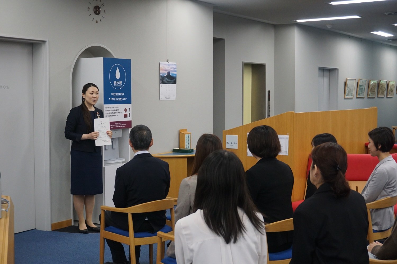 株式会社良品企画の『無印良品「水」プロジェクト』から学びを得て、プラスチックごみの削減をめざした自然環境への配慮した給水器が、図書館に設置されました。