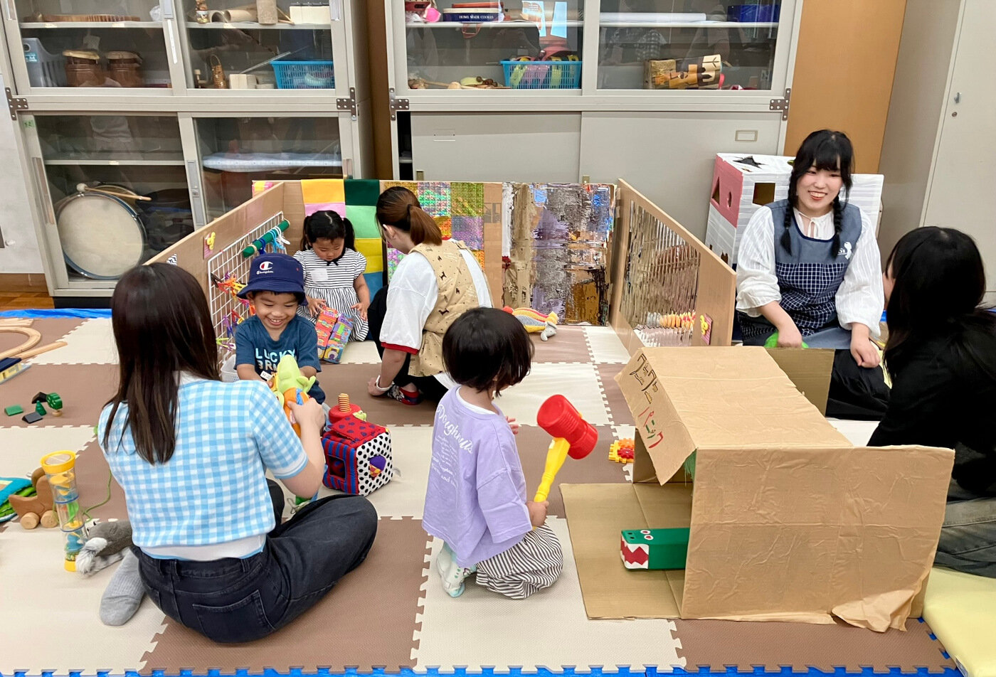 『ひろば』には、遊びに来てくれる子どもたちの笑顔、その子どもたちを見守る保護者たちの落ち着いた笑顔、子どもと関わる学生の笑顔があり、とても穏やかで落ち着いた遊びの空間があります。