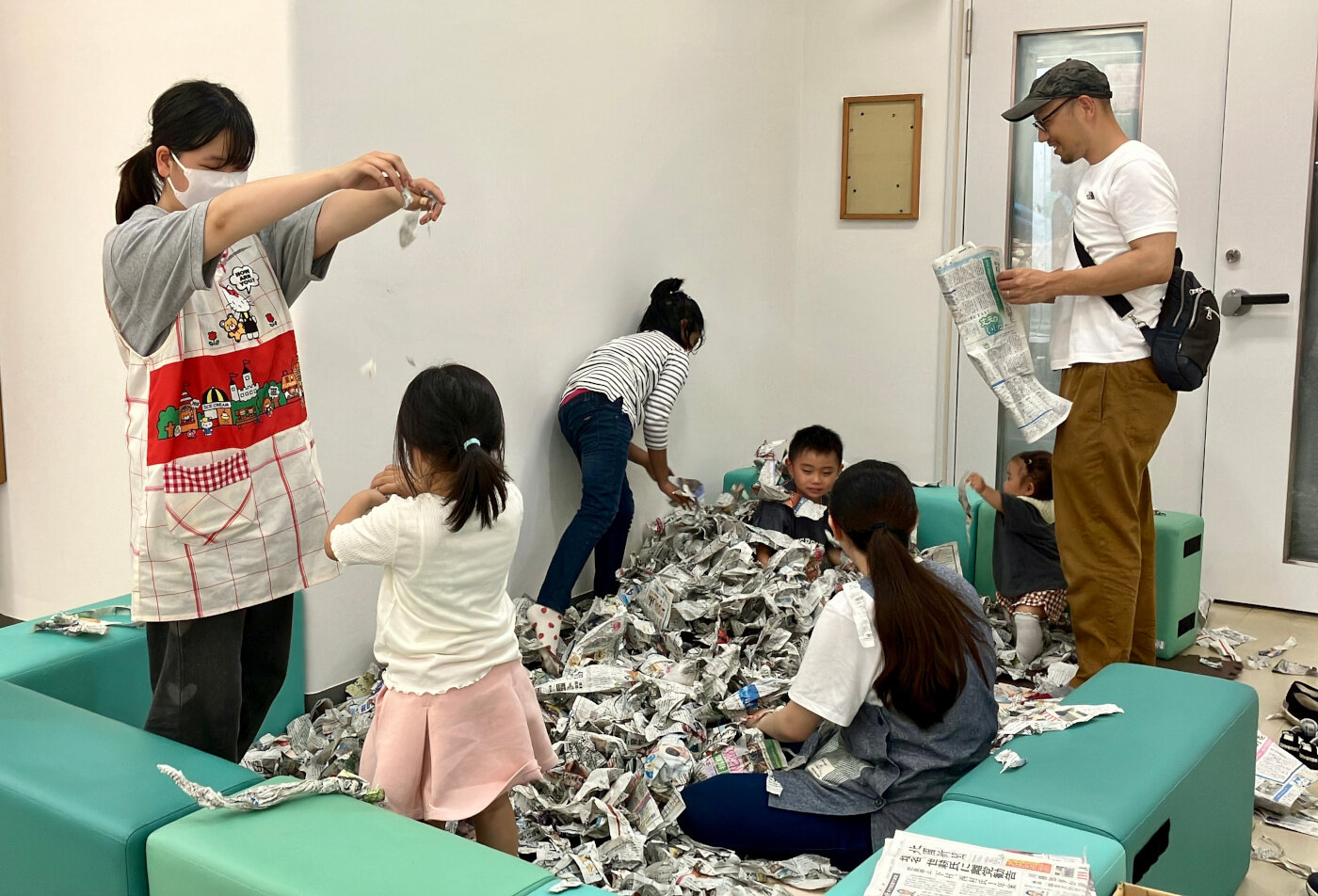 昨年度も実施した「新聞破り」は今年も好評でした。家庭ではできないダイナミックな遊びに、歓声を上げていました。