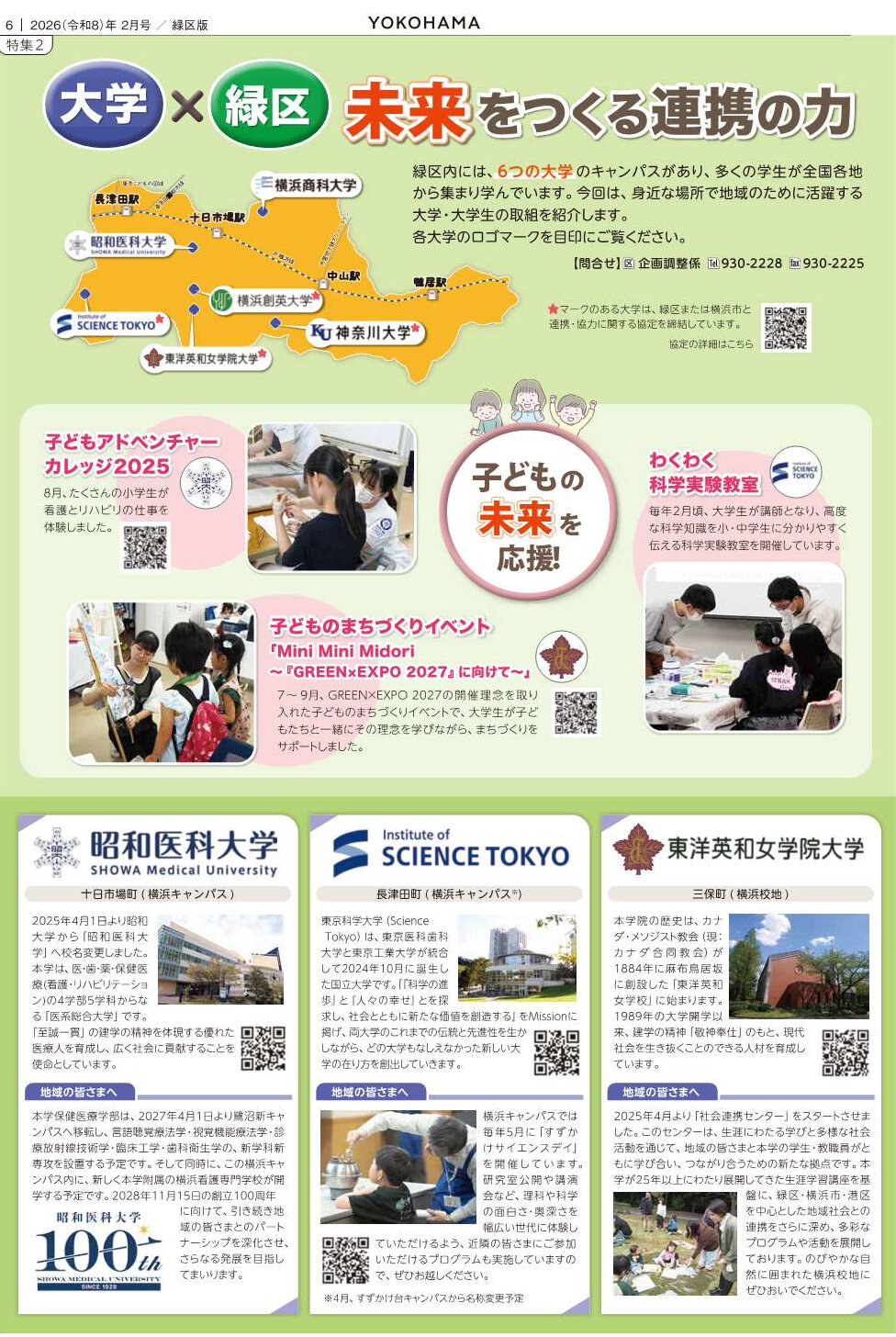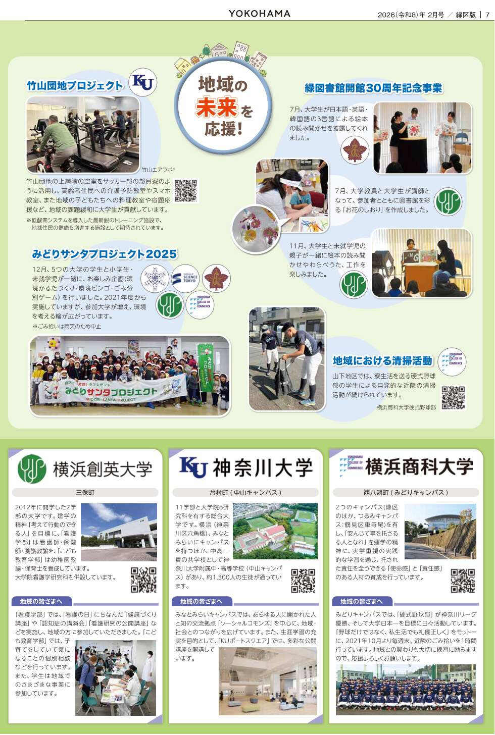 広報よこはま緑区版2月号の6〜7面「大学×緑区 未来をつくる連携の力」特集に、本学の取組が紹介されました。