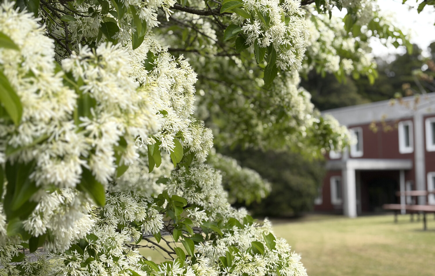 7号館そばのなんじゃもんじゃの木の花がまもなく満開です。