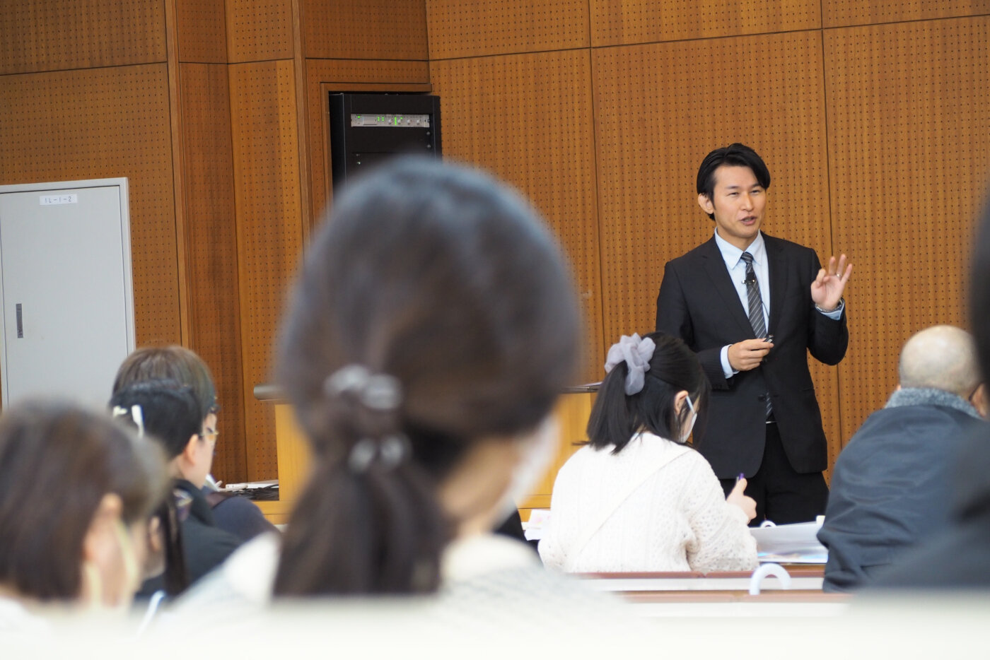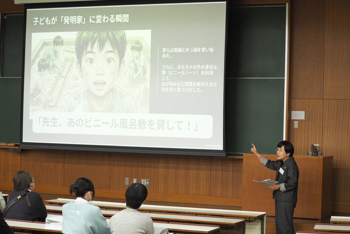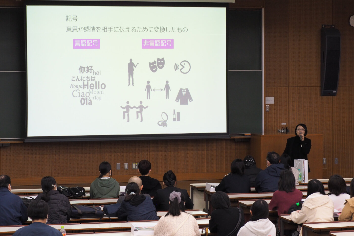 - 《総合心理学科》日常生活に隠れた心理学の不思議を解き明かす講義が行われました。身近な例えを交えた解説に、皆さん熱心にメモを取る姿が見られました。