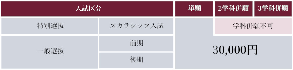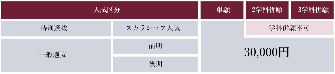 | スカラシップ生合格 | 最長4年間の授業料など免除 |