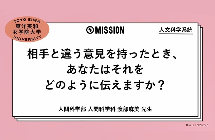 東洋英和の先生が、専門研究内容から、今、受験生のあなたに考えてほしいMISSIONを考えました。