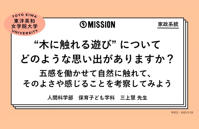 動画を見て、MISSIONにチャレンジすることで、本学の学びに触れることができるだけでなく、